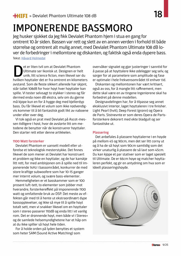 Jeg husker sjokket da jeg fikk Devialet Phantom hjem i stua en gang for omtrent 10 år siden. Bassen var rett og slett av en annen verden i forhold til både størrelse og omtrent alt mulig annet, med Devialet Phantom Ultimate 108 dB lover de forbedringer i mellomtone og diskanten, og faktisk også enda dypere bass.