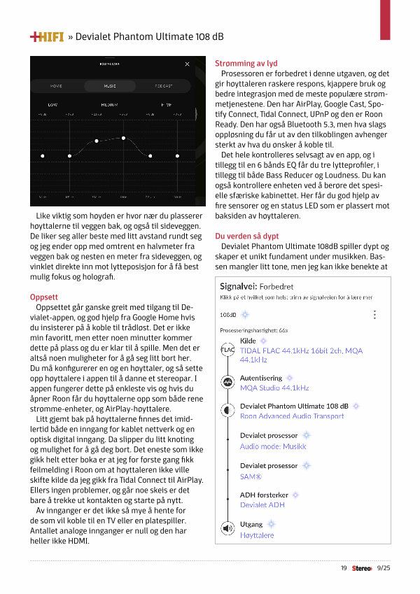 Devialet Phantom Ultimate 108dB spiller dypt og skaper et unikt fundament under musikken. Bassen mangler litt tone, men jeg kan ikke benekte at