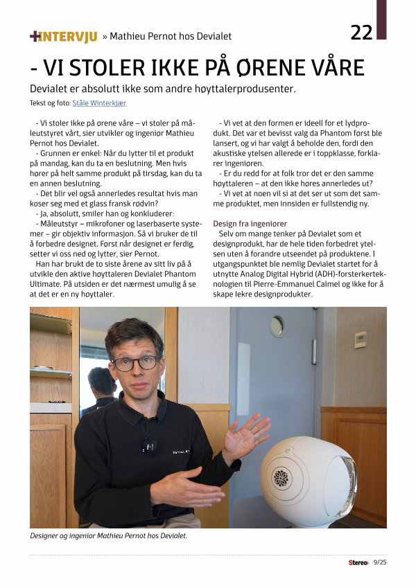 - Vi stoler ikke på ørene våre – vi stoler på måleutstyret vårt, sier utvikler og ingeniør Mathieu Pernot hos Devialet.