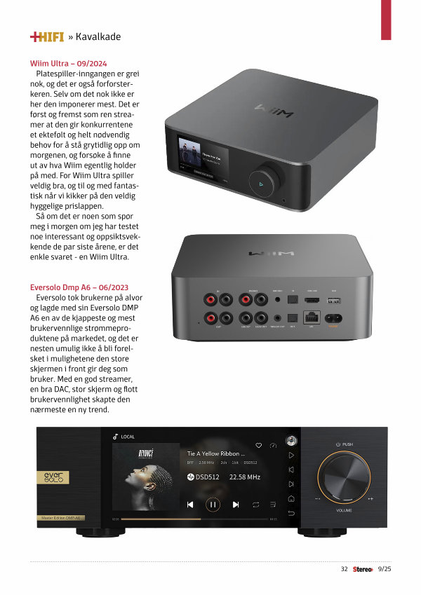 Eversolo tok brukerne på alvor og lagde med sin Eversolo DMP A6 en av de kjappeste og mest brukervennlige strømmeproduktene på markedet, og det er nesten umulig ikke å bli forelsket i mulighetene den store skjermen i front gir deg som bruker. Med en god streamer, en bra DAC, stor skjerm og flott brukervennlighet skapte den nærmeste en ny trend.