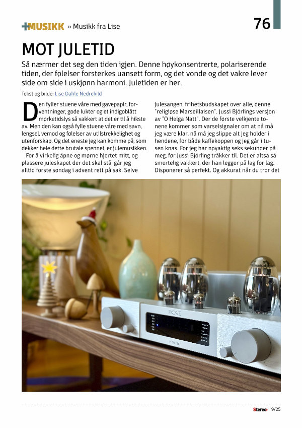 julesangen, frihetsbudskapet over alle, denne“ religiøse Marseillaisen”. Jussi Björlings versjon av“ O Helga Natt”. Der de første velkjente tonene kommer som varselsignaler om at nå må jeg være klar, nå må jeg slippe alt jeg holder i hendene, før både kaffekoppen og jeg går i tusen knas. For jeg har nøyaktig seks sekunder på meg, før Jussi Björling tråkker til. Det er altså så smertelig vakkert, der han legger på lag for lag. Disponerer så perfekt. Og akkurat når du tror det