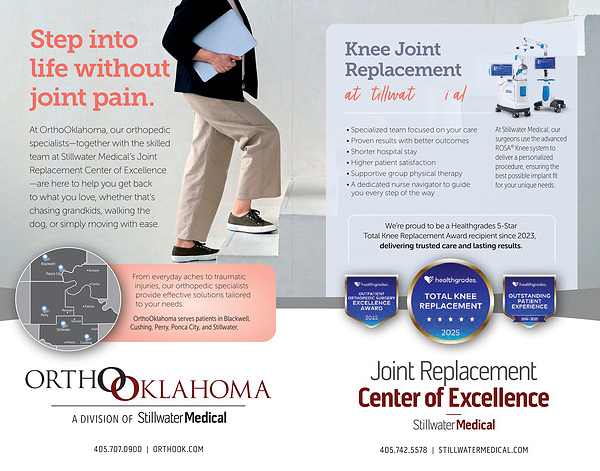 At OrthoOklahoma, our orthopedic specialists— together with the skilled team at Stillwater Medical’ s Joint Replacement Center of Excellence— are here to help you get back to what you love, whether that’ s chasing grandkids, walking the dog, or simply moving with ease.