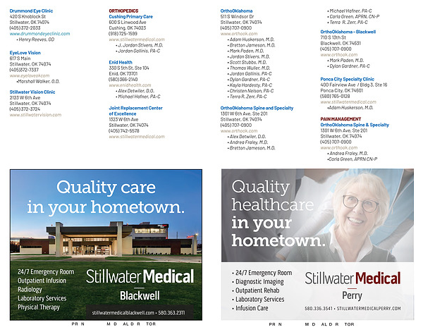 24 / 7 Emergency Room Outpatient Infusion Radiology Laboratory Services Physical Therapy stillwatermedicalblackwell. com • 580.363.2311