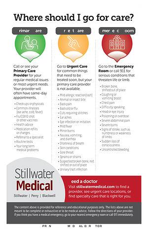 Visit stillwatermedical. com to find a provider, see urgent care locations, or find specialty care that is right for you.