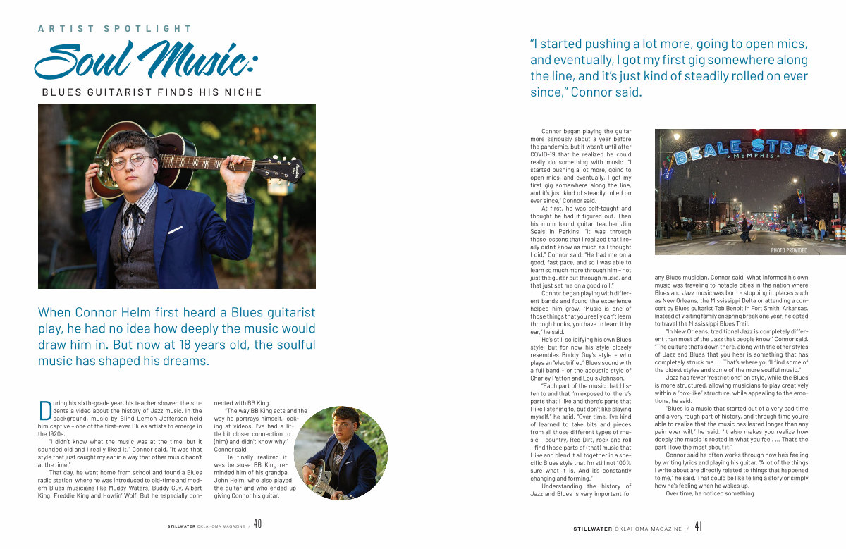 When Connor Helm first heard a Blues guitarist play, he had no idea how deeply the music would draw him in. But now at 18 years old, the soulful music has shaped his dreams.