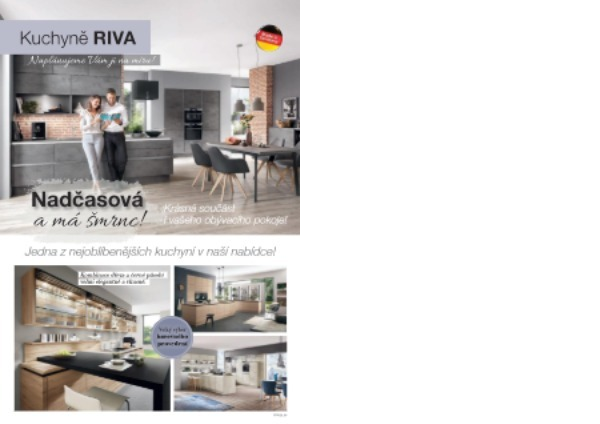 Jednoduché čisté linie a široká nabídka dekorů včetně dřeva a betonu dělají z kuchyně RIVA jednu z nejoblíbenějších v naší nabídce . Skvěle se svým designem hodí do moderních interiérů , které může dřevěnými dekory zároveň zútulnit . Vybrat si můžete také ze široké nabídky pracovních desek a úchytek , nebo podpořit čistý design kuchyně bezúchytkovým řešením LINE N .