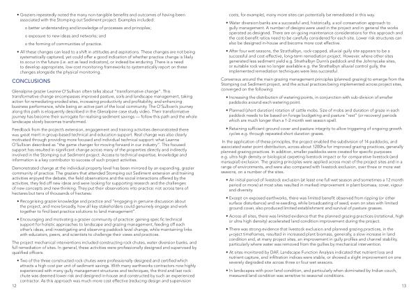 • Graziers repeatedly noted the many non-tangible benefits and outcomes of having been associated with the Stomping out Sediment project . Examples included :