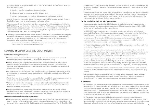 Summary of Griffith University LiDAR analyses .