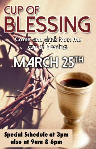 cup of BLESSING Come and drink from the cup of blessing. MArch 25 Special Schedule at 3pm also at 9am & 6pm th