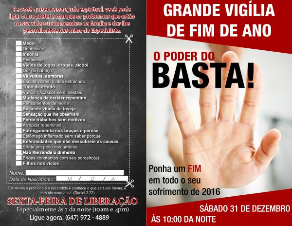 GRANDE VIGÍLIA DE FIM DE ANO O PODER DO BASTA! Ponha um FIM em todo o seu sofrimento de 2016 SÁBADO 31 DE DEZEMBRO ÀS 10:00 DA NOITE