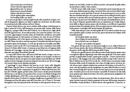 I personaggi vi erano disposti tutt’ attorno, un po’ come nelle xilografie dell’ Ultima Cena del Dürer, e come del resto farà anche Gaudenzio nella Cena della parete delle Grazie e soprattutto in quella di S. Maria della Passione a Milano del 1543-44, seguito poi dal Lanino, dal Cerano e da altri pittori lombardi del Seicento. Così infatti ce lo presenta forse con una certa libertà il disegno del « Libro dei Misteri »( 1567-68), e così, con più precisione ce lo raffigura la xilografia di Gioachino Teodorico Coriolano intagliata per la guida del 1611, ma ristampata poi fino alla prima metà dell’ Ottocento, con il Cristo, S. Giovanni Evangelista e due altri apostoli sul lato di fondo, tre altri apostoli a destra e tre a