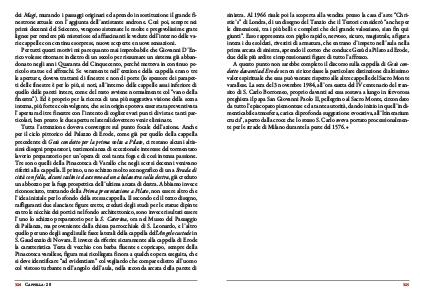 Per tutti questi motivi mi pare quanto mai improbabile che Giovanni D’ Enrico volesse ritornare indietro di un secolo per riesumare un sistema già abbandonato negli anni Quaranta del Cinquecento, perché metteva in continuo pericolo statue ed affreschi. Se veramente nell’ erezione della cappella erano tre le aperture, doveva trattarsi di finestre e non di porte( lo spessore dei parapetti delle finestre è per lo più, si noti, all’ interno delle cappelle assai inferiore di quello delle pareti intere, come del resto avviene normalmente col“ vano della finestra”). Ed è proprio per la ricerca di una più suggestiva visione della scena interna, più forte e coinvolgente, che se in origine poteva esser stata preventivata l’ apertura di tre finestre con l’ intento di cogliere vari punti di vista e tanti particolari, ben presto le due aperture laterali dovettero venir eliminate.
