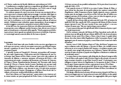 L’ episodio, narrato nel Vangelo di S. Giovanni, aveva goduto nell’ iconografia sacra tardo Quattrocento e della prima metà del Cinquecento di una certa fortuna: basti pensare all’ Ecce Homo a mezzo‘ insto varie volte replicato da Antonello da Messina, a numerose miniature, all’ incisione del Durer, o alle composizioni più ampie e complesse del Romanino nel Duomo di Cremona, di Tiziano( Vienna, Kunsthistorisches Museum), del Tintoretto nella Scuola Grande di S. Rocco a Venezia. Anche il nostro Gaudenzio nei suoi anni tardi aveva raffigurato la scena in un vasto affresco nella cappella di S. Corona in S. Maria delle Grazie a Milano, e per rimanere in aree a noi più vicine, possiamo ricordare il quadro del Lanino a Romagnano, o l’ affresco, forse di uno dei Cavallazzi, nel convento varallese della Madonna delle Grazie.