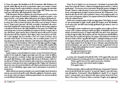 sinistra e pressoché nascosta, e l’Angelo sulla destra, ben più in vista, quasi presso al basso ingresso della cella funeraria, nell’atto di annunciare alla Maddalena