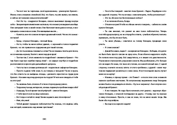– Уж кто бы говорил!– закатил глаза брюнет.– Ладно. Подойдем к этому с другой стороны. Что ты хочешь с ним натворить, чтобы успокоиться? – Это ты обо мне так беспокоишься сейчас? – Я за человека боюсь, балда. – Отвали на хрен! Я тебе не обязан ничего говорить, – забился в своём кресле блондин.