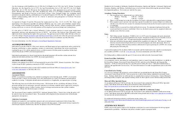 https://www.nwtc.edu/Admissions/Evaluation-and-Assessment/Employment-and-Certification-Testing or call