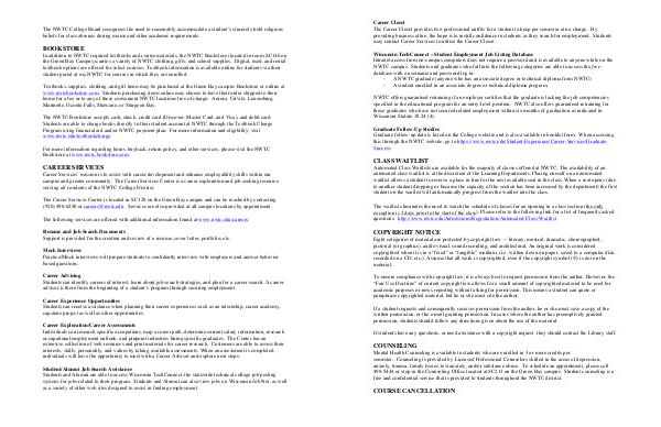 The following services are offered with additional information found at www. nwtc. edu / careers: