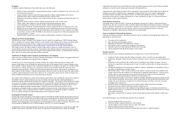 a. Expulsion: Expel a student from the College, a program, course, or activity on a permanent basis. b. Suspension: Suspend a student from the College, a program, course or activity for a specified period of time. c. Prohibition on Re-enrollment: Bar a student from re-enrolling in the College, a program, course or activity for a specified or unlimited period of time, if a student withdraws prior to being suspended or expelled. d. Conditional Enrollment or Re-enrollment: Condition a student’ s enrollment or re-enrollment on his or her taking or refraining from specific actions. e. Behavioral Contract – Place a written contract in the student’ s conduct case file where students must comply with all terms and conditions of College policies regarding student behavior. They must also comply with any sanctions and provisions issued in the behavior contract such as mental health assessments, counseling participation, referrals to outside agencies, etc. f. Educational Requirements: A provision to complete a specific educational requirement directly related to the violation committed. The provision will be clearly defined. Such educational requirements may include, but are not limited to, completion of an alcohol education workshop, a diversity awareness workshop, essays, reports, etc. g. Remedial Action: An agreement between the student and the Office of the Dean of Student Development that the student shall pursue specific remedial action. h. Probation and / or Restrictions: The withdrawal of specified privileges or restrictions on action for a definite period of time( i. e., restriction from entering specific College areas and / or all forms of contact with certain individuals). i. Reprimand: A formal letter of warning or final warning shall be placed in the student’ s conduct case file.