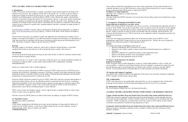NWTC ALCOHOL, TOBACCO AND DRUG FREE CAMPUS
