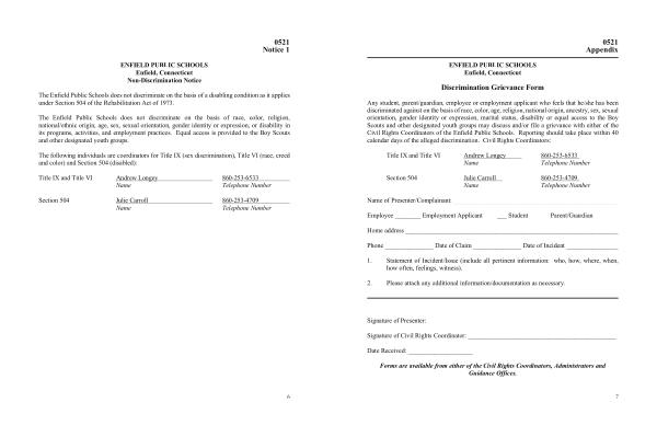 ENFIELD PUBLIC SCHOOLS Enfield , Connecticut Non-Discrimination Notice