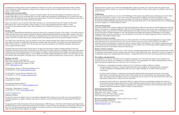 Residence Life Staff Main Office Location : Loyola Hall 138 Office Hours : Monday-Friday , 9:00 AM-5:00 PM Telephone : 267-448-1305 ( On-Campus : x21305 ) Email :