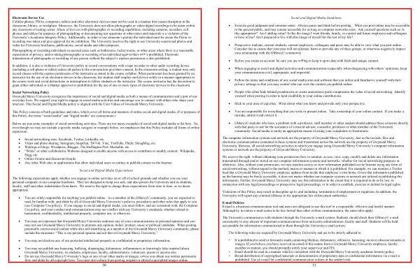 • You are solely responsible for anything you publish online . As a member of the GMercyU community , you are expected to read , be familiar with , and abide by all of Gwynedd Mercy University ’ s policies , procedures and other rules that apply to you ( see Computer Use policy ). If you engage in social and digital media , you must follow , and act consistent with , the Computer Use policy , and your conduct and communications may not conflict with any University ’ s standards , whether related to harassment , confidentiality , intellectual property , computer use , or otherwise .