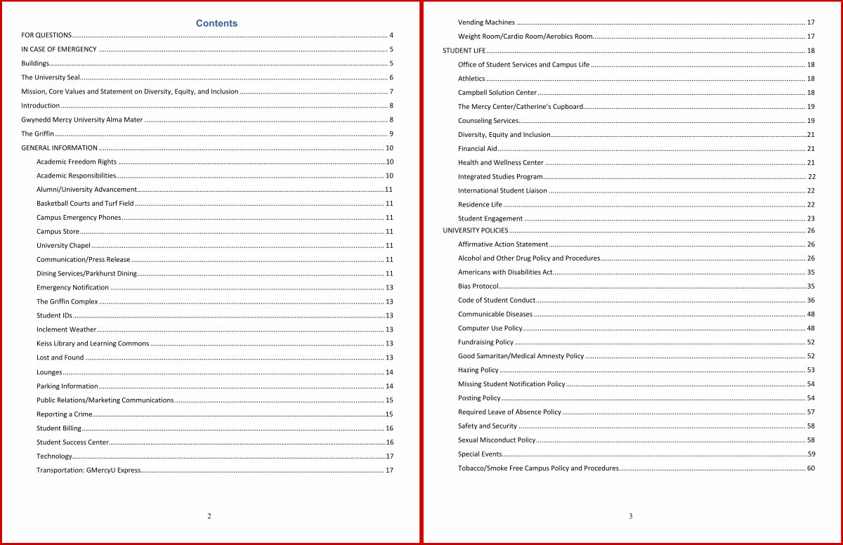 STUDENT LIFE........................................................................................................................................................................ 18 Office of Student Services and Campus Life................................................................................................................. 18 Athletics........................................................................................................................................................................ 18 Campbell Solution Center............................................................................................................................................. 18 The Mercy Center / Catherine’ s Cupboard..................................................................................................................... 19 Counseling Services....................................................................................................................................................... 19 Diversity, Equity and Inclusion ………………………………………………………………………………………………………………………………… 21 Financial Aid.................................................................................................................................................................. 21 Health and Wellness Center......................................................................................................................................... 21 Integrated Studies Program ……………………………………………………………………………………………………………………………………. 22 International Student Liaison....................................................................................................................................... 22 Residence Life............................................................................................................................................................... 22 Student Engagement.................................................................................................................................................... 23