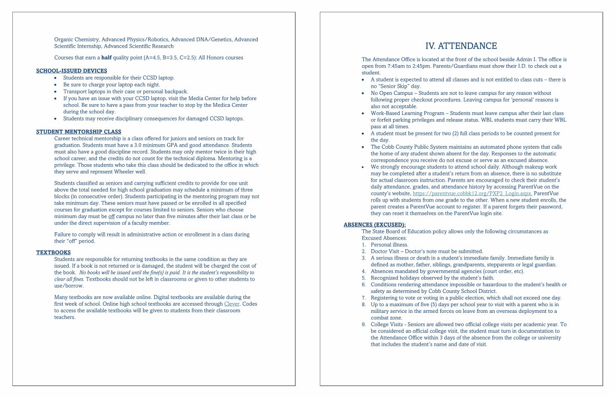 9. College Visits- Seniors are allowed two official college visits per academic year. To be considered an official college visit, the student must turn in documentation to the Attendance Office within 3 days of the absence from the college or university that includes the student’ s name and date of visit.