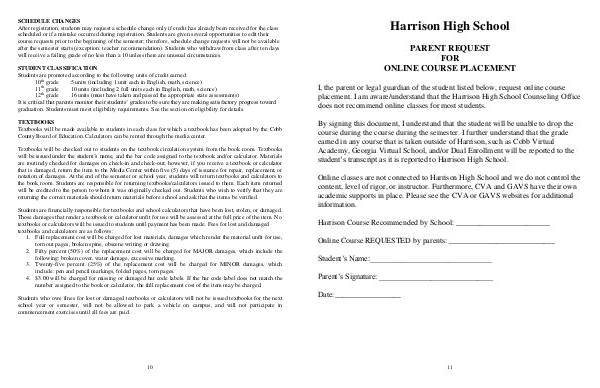 placement. I am aware/understand that the Harrison High School Counseling Office