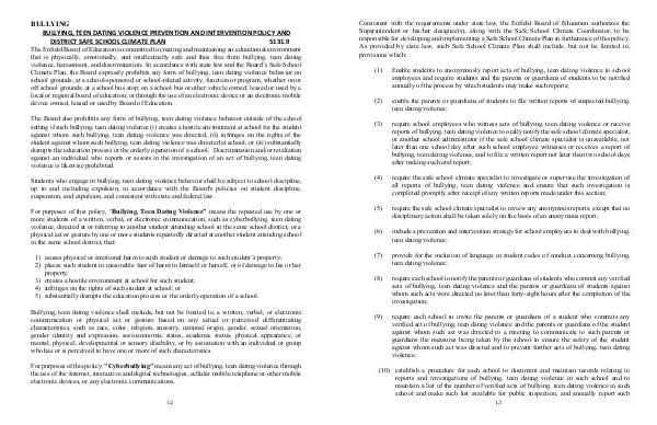 verified act of bullying, teen dating violence and the parents or guardians of the student