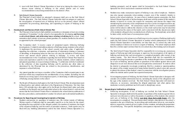 Procedures for Rep orting and Investigating Complaints of Bullying