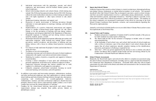 Annually, each school in Enfield shall review its own Safe School Climate Plan in order to meet