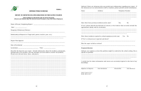 REPORT OF SUSPECTED BULLYING BEHAVIORS OR TEEN DATING VIOLENCE
