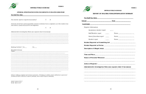 INTERNAL INVESTIGATION NOTES FOR REPORTS OF BULLYING BEHAVIORS