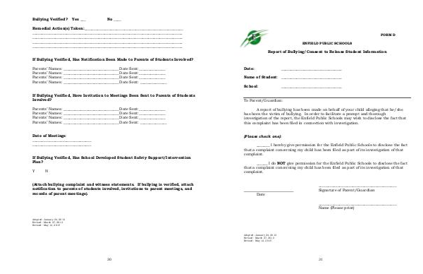 (Attach bullying complaint and witness statements. If bullying is verified, attach