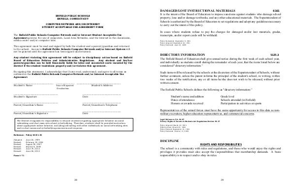 outlined in the Enfield Public Schools Computer Network and/or Internet Acceptable Use