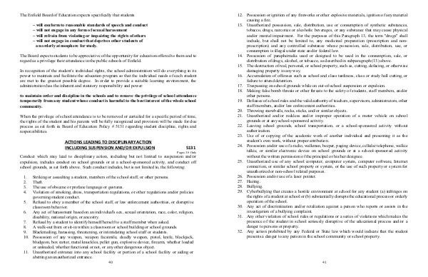 The Enfield Board of Education expects specifically that students