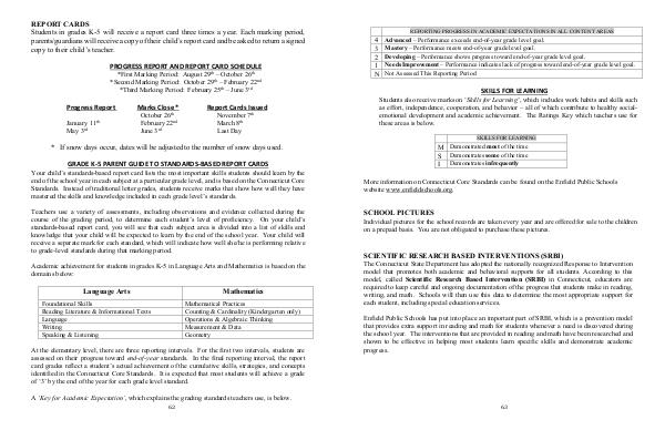 standards-based report card, you will see that each subject area is divided into a list of skills and