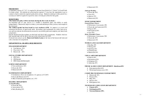 A minimum average of 1.7 (C- ) is required to advance from Grade 6 to 7, Grade 7 to 8 and Grade