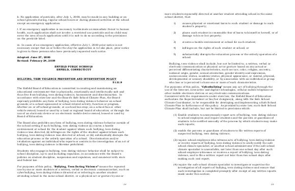 Consistent with the requirements under state law, the Enfield Board of Education