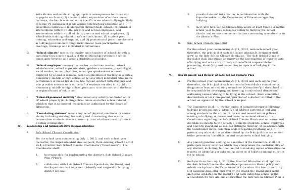 1. be responsible for implementing the district’s Safe School Climate