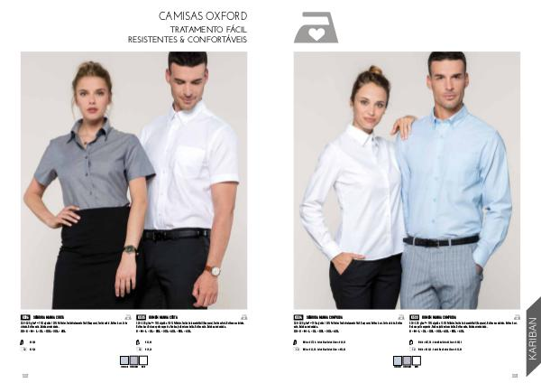 130-135 g/m² • 70% algodão / 30% Poliéster. Tecido tratamento fácil (Easy care). Tecido oxford. Botões à cor. Corte