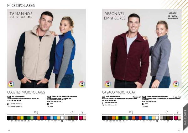 300 g/m² • 100% Poliéster micropolar com tratamento anti borboto. Fecho inteiro. 2 Bolsos frontais com fecho.