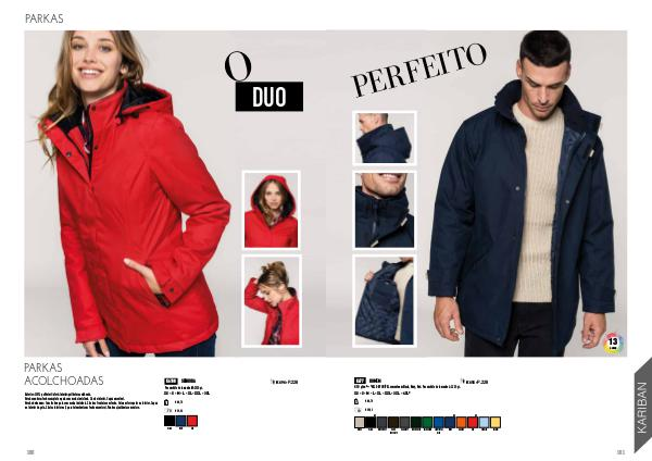 Versão de homem: Com fecho e pala com molas invisíveis. 2 bolsos frontais com fecho. Gola em forro polar no interior. Capuz