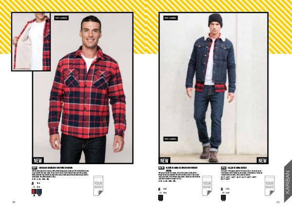 100 % flanela de algodão. Forro em sherpa 100 % poliéster. Mangas duplas forradas em 100 % poliéster taffeta. Camisa larga com interior muito suave quente. 2 bolsos no peito com pala. Carcela clássica. Punhos com botões reguláveis. Bainha arredondada. Peça fornecida com etiqueta sem marca, contendo apenas indicação de tamanho para facilitar a personalização. Peso médio do tamanho L: 636 gr.