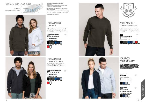 360 g/m² • 80% Algodão penteado / 20% Poliéster. Interior cardado. Lavagem