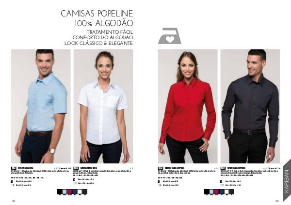 120-125 g/m² • 100% Algodão popeline. Tecido tratamento fácil. Não tem botões no colarinho. Botões à cor. Bolso no