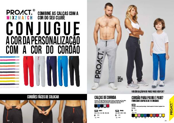 190 g/m² • 100% algodão (Oxford grey: 90% algodão / 10% viscose). Tecido flexível e leve. Cintura elástica