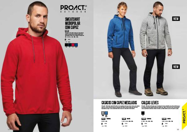 345 g/m² • Malha interior cardado 100% poliéster. 2 bolsos frontais com fecho em contraste e 1 bolso no peito com fecho