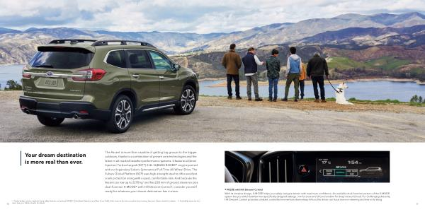 The Ascent is more than capable of getting big groups to the bigger outdoors , thanks to a combination of proven core technologies and the latest in all-road / all-weather performance systems . It features a Direct Injection Turbocharged ( DIT ®) 2.4L SUBARU BOXER ® engine paired with our legendary Subaru Symmetrical Full-Time All-Wheel Drive . The Subaru Global Platform ( SGP ) uses high-strength steel to offer excellent crash protection along with a quiet , comfortable ride . And because the Ascent can tow up to 2270 kg 1 and has 220 mm of ground clearance plus dual-function X-MODE ® with Hill Descent Control 2 , consider yourself ready for whatever your dream destination has in store .